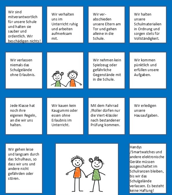 - Schülertoiletten hinterlassen wir sauber und ordentlich, weil alle Kinder eine saubere Toilette nutzen möchten.